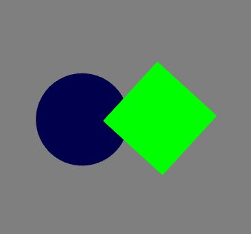 Dans l'exemple ci-dessous, le diamant vert est notre nœud «Matte» avant d’être connecté au nœud «Cutter», et le cercle est le nœud «Drawing» qui sera affecté. Dans la deuxième image, noeud «Matte» a été connecté au port de connexion gauche, et nous voyons qu’il a caché le cercle à l'endroit où les deux se sont chevauchés.