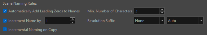 - Incremental Naming on Copy: En cochant cette case, les scènes/séquences copiées seront nommées dans l'ordre séquentiel plutôt qu'avec un suffixe. Par exemple, une scène 10 copiée sera collée en tant que scène 10_A par défaut, mais cette option la renomme en scène 11.