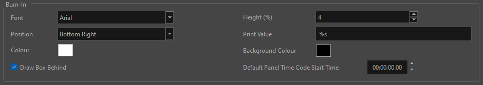 - Font: Le type de police que vous souhaitez utiliser dans le «Burn-In».