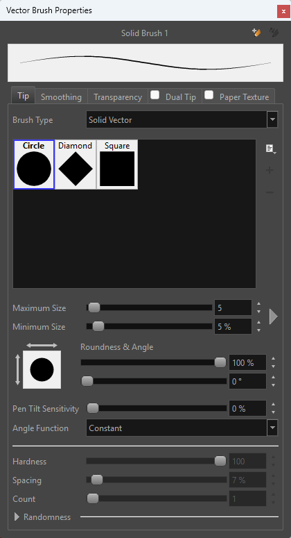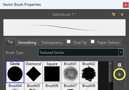 - La fenêtre «Vector Brush Properties» apparaît: