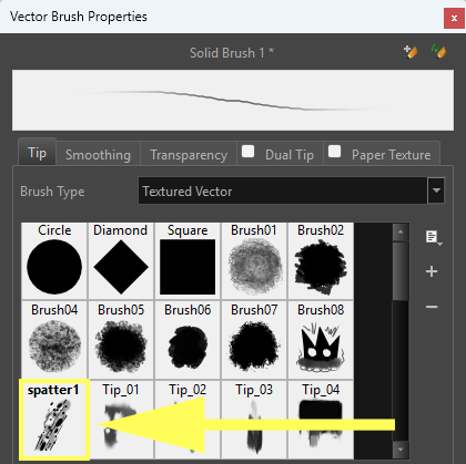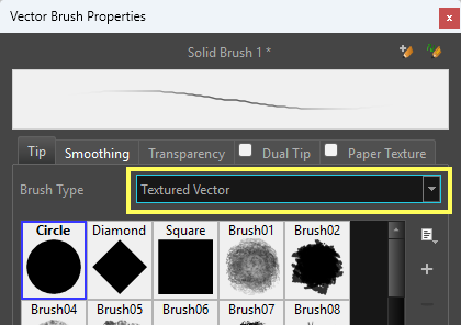 - Dans la liste déroulante, sélectionnez «Textured Vector» pour afficher toutes les brosses disponibles.