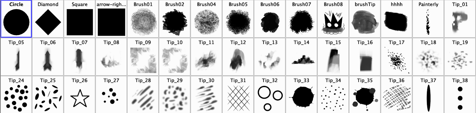 Si vous voulez créer une image et l'utiliser comme forme de brosse personnalisée dans Storyboard Pro, vous devez veiller à ce que l'image et le format respectent certaines règles simples pour qu'elles fonctionnent bien. Prenez note des directives suivantes lorsque vous créez une image pour les brosses personnalisées de Storyboard Pro.