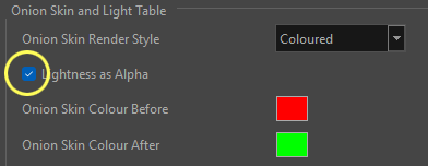 - Dans la fenêtre «Preferences», sélectionnez l’onglet «Camera and Stage» et localisez la section «Onion Skin and Light Table»: