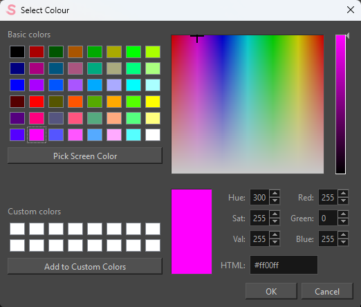 Cliquez sur une case de couleur pour ouvrir la fenêtre «Select Colour».