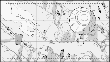 | NOTE: Les clips vidéo ne sont pas affectés par les déplacements de la caméra. Le clip image reste placé derrière la caméra, sans être affecté par les modifications du storyboard. |