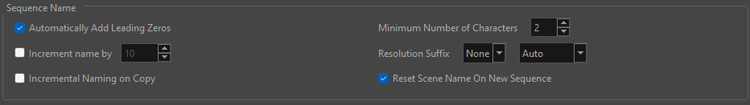 - In the Sequence Naming Rules, the option Reset Scene Name on New Sequence will restart the naming of scenes in a new sequence.