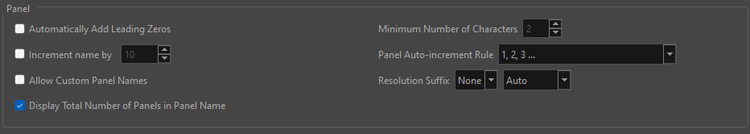 - Display Total Number of Panels in Panel Name: Cette option permet d'afficher le nombre total de panneaux d'une scène sur chaque panneau. Par exemple, le panneau 7 sur 9 s'affichera sous la forme 7/9.