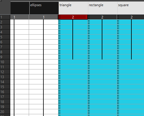 Dans la vue «Xsheet», Maintenez la touche Shift enfoncée et sélectionnez les dessins dont l'exposition doit être modifiée.