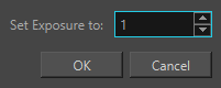Dans le menu de la vue «Timeline», selectionnez Exposure > Set Exposure To > Set Exposure pour définir un nombre personnalisé, ou utiliser l'une des expositions prédéfinies «Set Exposure to 1/2/3».