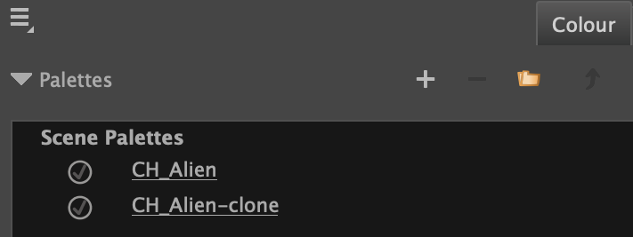 - Le clonage d'une palette de couleurs permet de créer une copie avec les mêmes identifiants de couleur, qui peut être utilisée pour d'autres palettes de couleurs de personnages. Consultez Comment créer plusieurs palettes de couleurs différentes pour un même personnage ? pour plus d'informations.
