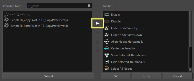 Dans la section «Available Tools», trouvez les scripts TB_CopyPastePivot.