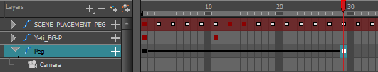 - Dans la vue «Timeline», s'assurer que chaque substitution est exposée à la bonne image, et qu’aucun trou n’est présent dans l’exposition du décor. Celui-ci disparaîtra ou les trous sont présents.