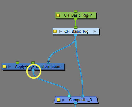 - Connectez le port inférieur (Output) du nœud «Apply-Peg-Transformation» à un composite afin que le clone soit visible.