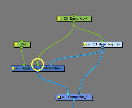 - Connecter le nouveau «peg» au port «Transformation» (à l'extrême gauche) du nœud «Apply-Peg-Transformation». Cela permettra au clone d'avoir sa propre position, indépendamment de l'original.