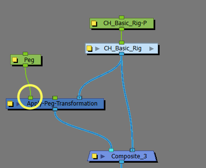 - Sélectionnez le «peg» connecté au nœud «Apply-Peg-Transformation».