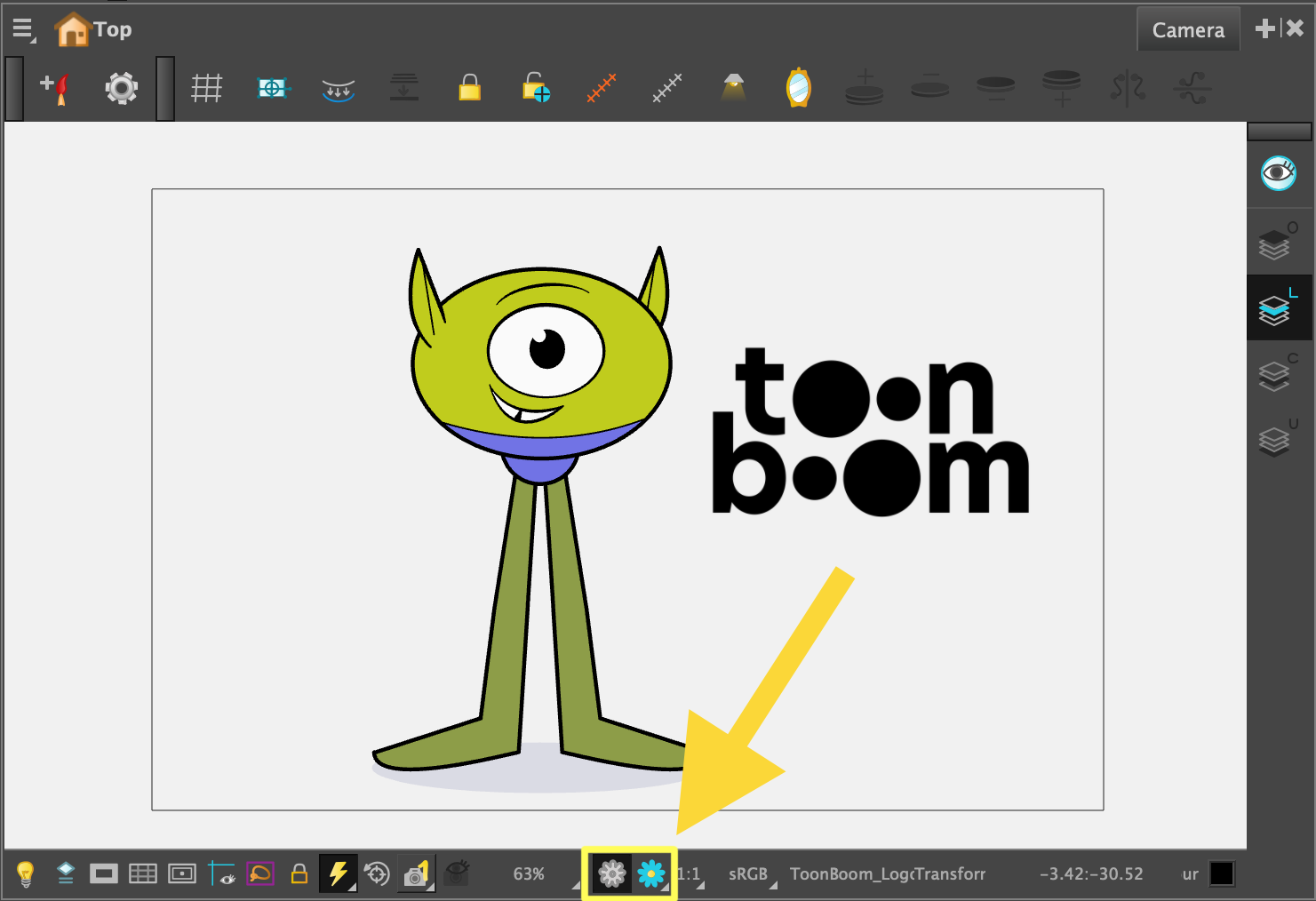 Dans Harmony, la vue «OpenGL» affiche des versions optimisées de vos dessins, animations et effets. Cela vous permet de travailler beaucoup plus rapidement, car vous n'êtes pas gêné par des fonctions et des graphiques exigeants en ressources. Les paramètres d'optimisation peuvent être ajustés dans l'onglet «OpenGL» de la fenêtre «Preferences».