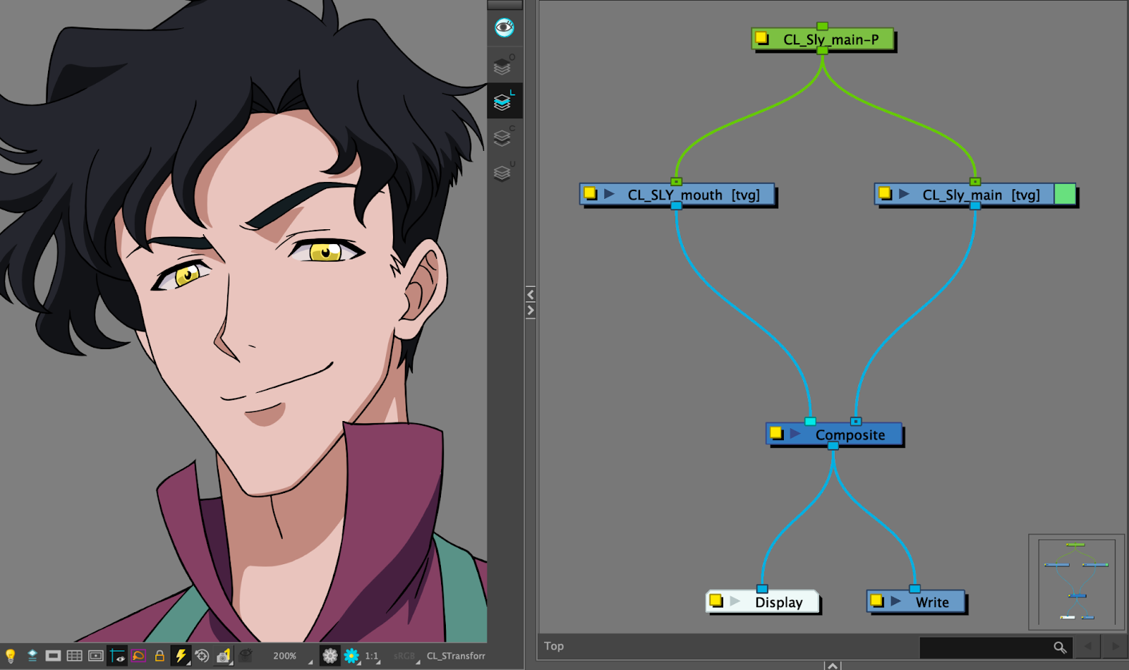 - Ouvrez les propriétés du calque composite en cliquant sur la case jaune du nœud.