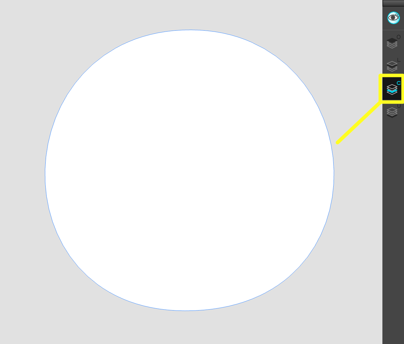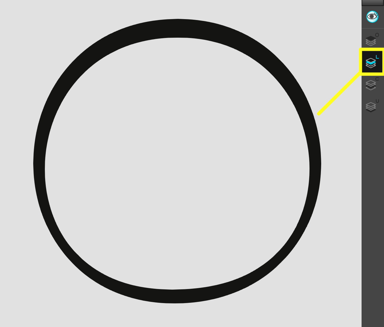 - Si la partie à découper comporte des lignes, celles-ci et les couleurs devront également être séparées sur différentes couches. Cela permet de s'assurer que nous pouvons placer le trait de l'œil au-dessus de la pupille. Voici à quoi ressemblent les couches de l'œil :