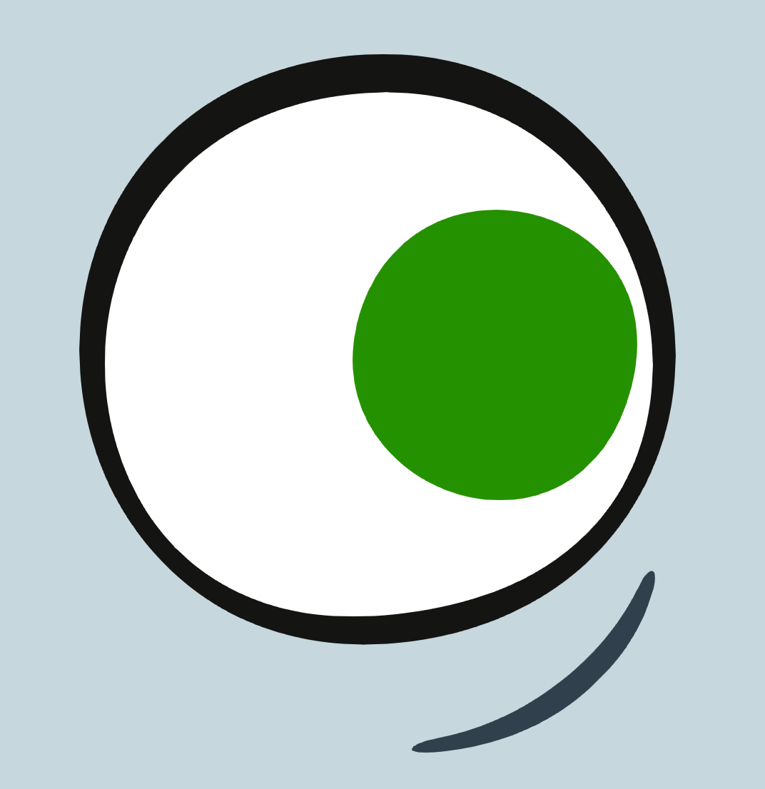 - La pupille est désormais contenue dans l’oeil, avec la ligne au-dessus.