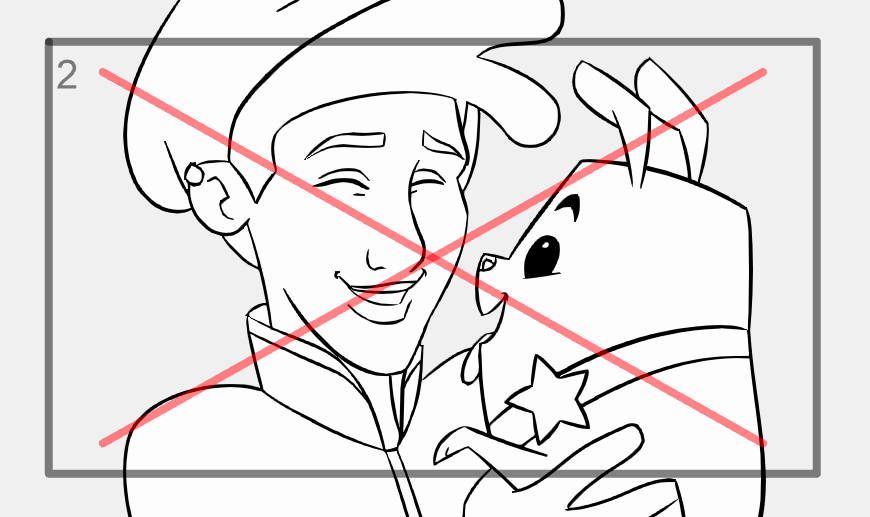 - Si vous souhaitez convertir les « thumbnails » en panneaux, veillez à ce que les illustrations restent dans leur cadre correspondant. Un certain chevauchement est autorisé, mais les illustrations situées en dehors de la limite invisible (illustrée ci-dessous) apparaîtront dans un panneau adjacent lors de la conversion (cela peut varier en fonction de l'espacement entre les panneaux).
