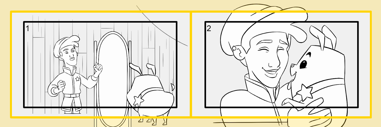| CONSEIL: Les pages de « thumbnails » peuvent également être créées et exportées sous forme de modèle vierge. Les illustrations importées dessinées dans la mise en page des cases peuvent ensuite être alignées dans Storyboard Pro pour être converties en cases et en scènes. |