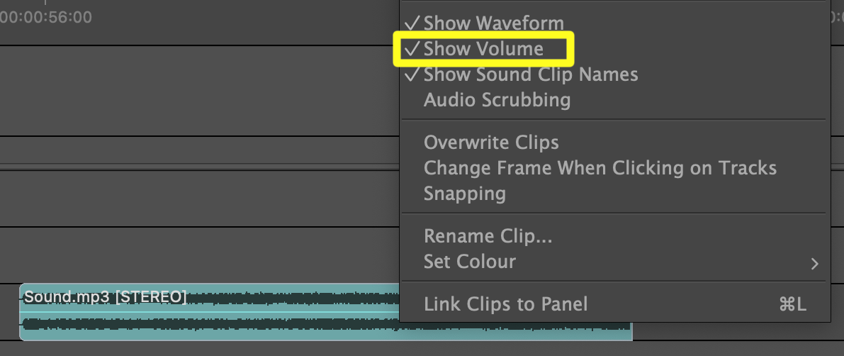 Cette étape vous permettra de voir le volume et les clés d’interpolation de volume sur vos clips audio. Si votre volume est déjà activé, passez à l'option 1 ou 2.