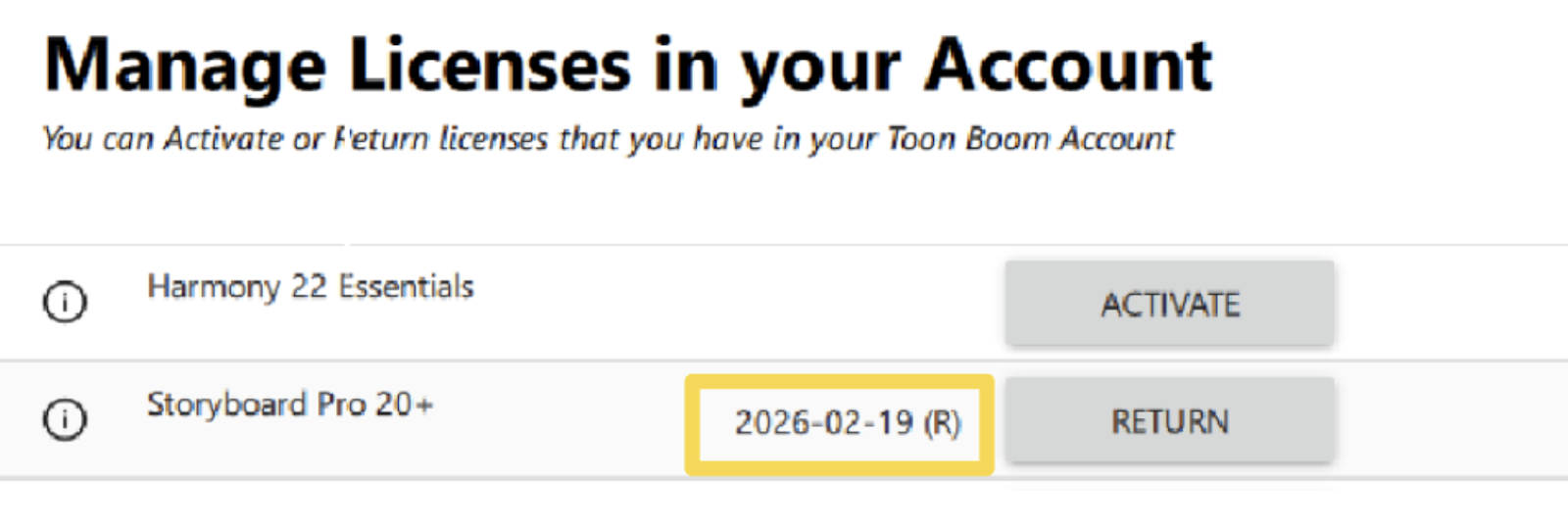 Cette date correspond à l'expiration de l'activation locale de la licence, et non à la date d'expiration totale de la licence. Lors de l'activation d'une licence, la date d'expiration locale est généralement fixée à 5 jours après la date d'activation. Une fois cette date atteinte, l'assistant de licence tentera automatiquement de se connecter aux serveurs de Toon Boom pour réactiver la licence. Si cette tentative a lieu avant la date d'expiration finale indiquée sur le serveur, la licence sera automatiquement réactivée localement.