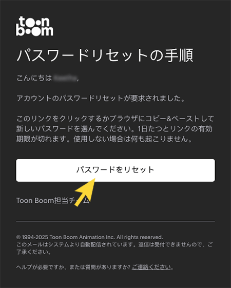 - パスワードリセットの手順が記載されたメールが届きます。 それを開き、パスワードをリセットするボタンをクリックしてください。