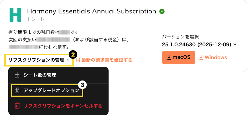 ステップ 2: Harmonyサブスクリプションのアップグレード