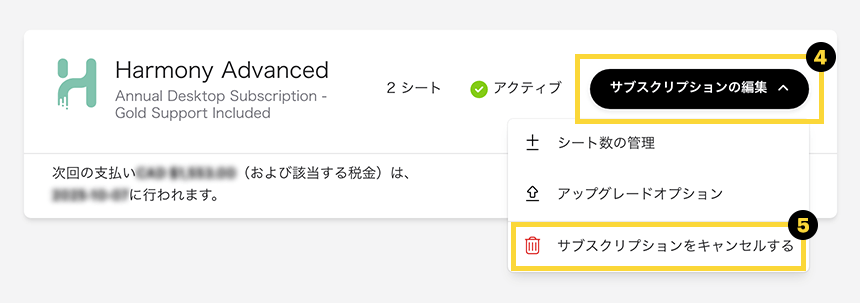 以下の手順に従って、サブスクリプションを簡単にキャンセルしてください:
