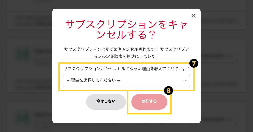 - サブスクリプションをキャンセルするポップアップウィンドウが開きます。
