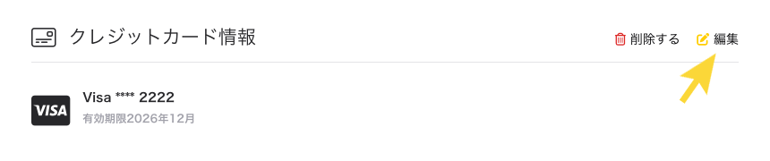 - クレジットカード情報パネルの右上にある編集をクリックします。