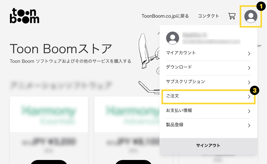 ステップ 1: ストアページから Toon Boom アカウントにログインします。