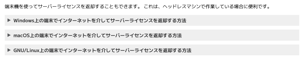 ターミナルからインターネット経由でサーバーライセンスをアクティベートまたは返却する方法を教えてください。