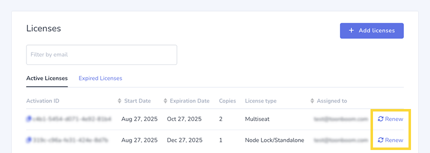 - Manage LicensesページのAdd licensesボタンをクリックします。