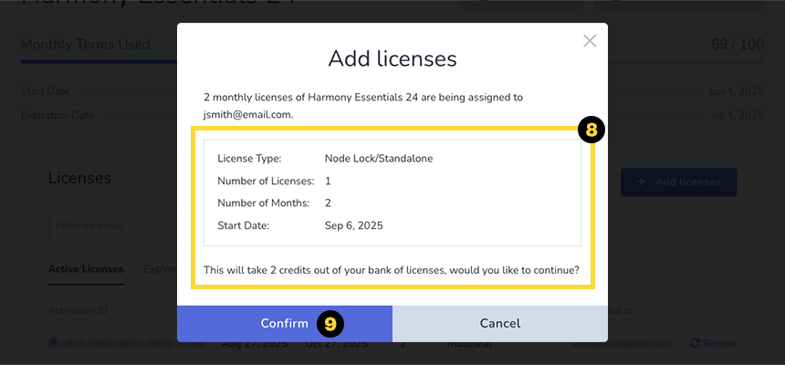 - ライセンスのアクティベーションIDとユーザーのメールアドレスを確認してください。