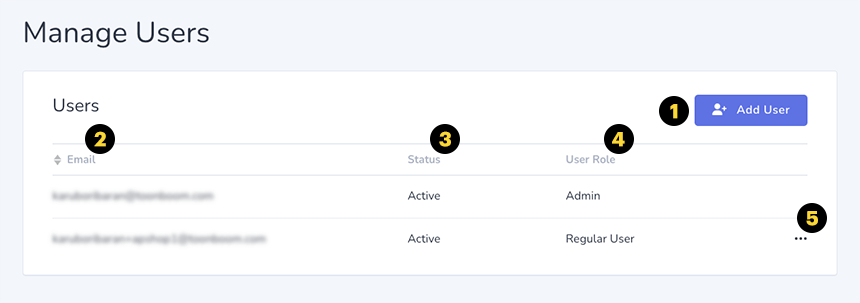 - ユーザアクションドロップダウンボタン(ここでは、ユーザのステータスまたはロールを変更したり、ユーザを削除することができます)