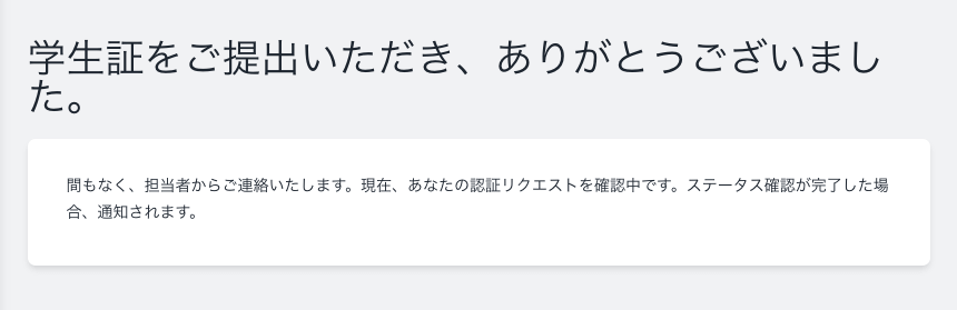 1. 学生ステータスの確認が必要ですのページで、認定を受けるボタンをクリックします。 学生アカウント認証ページが表示されます。