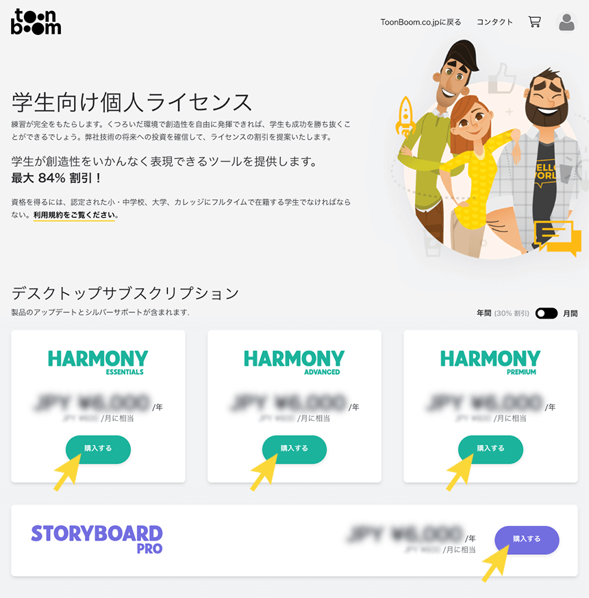 学生ライセンスに適用される条件は、こちらをご覧ください。