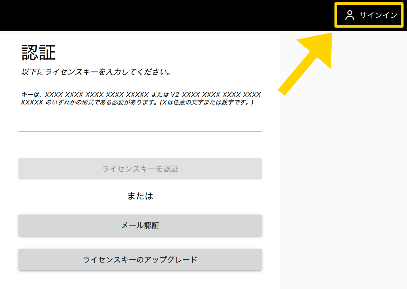 - アクティベーションページで、右上隅の「サインイン」をクリックします。