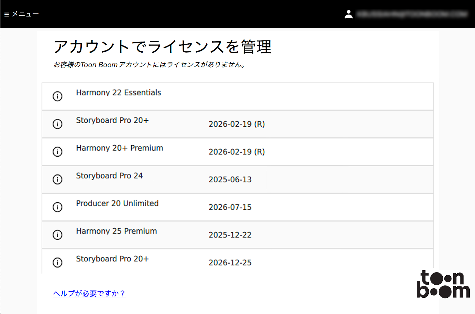 - Toon Boom ソフトウェアを開くか、次のいずれかの操作を行ってください: