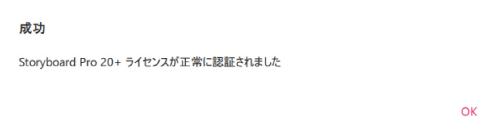 - ライセンスが正常に認証されたことを確認するダイアログが表示されます。