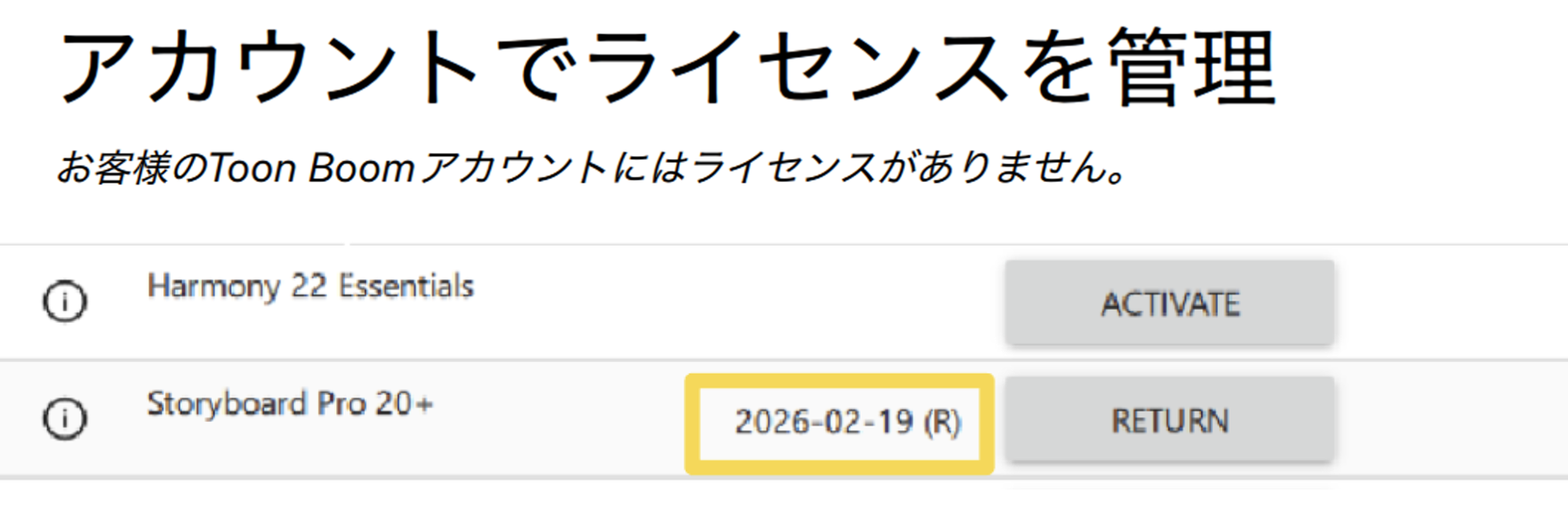この日付は、ローカルライセンスアクティベーションの有効期限であり、ライセンス全体の有効期限ではありません。ライセンスをアクティベートする際、ローカルの有効期限は通常、アクティベーション日から5日後に設定されます。この設定日に達すると、ライセンスウィザードは自動的にToon Boomのサーバーに接続し、ライセンスの再アクティベーションを試みます。サーバーに記載されている最終有効期限より前に接続が行われた場合、ライセンスは自動的にローカルで再アクティベーションされます。