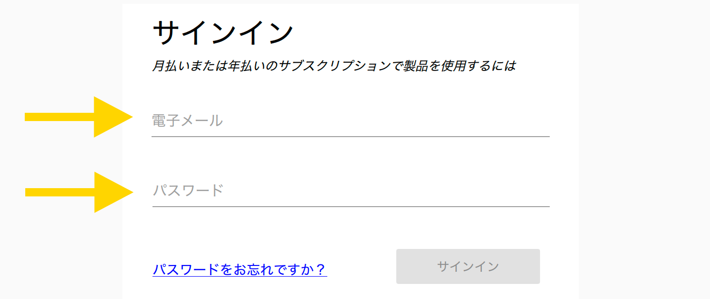 - サインインページが開きます。指定されたフィールドに電子メール アドレスとパスワードを入力します。