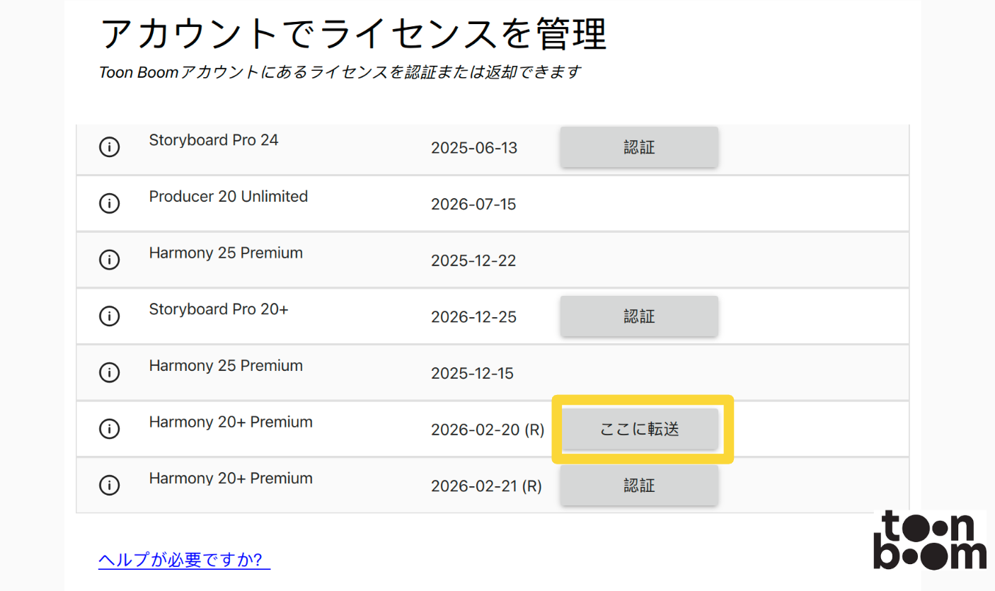 | ノート: その他のライセンスの問題が発生した場合は、 FAQ:ライセンスエラー 記事を読むか、Toon Boomに連絡してください - Toon Boomのサポートに連絡するにはどうすればよいですか? |