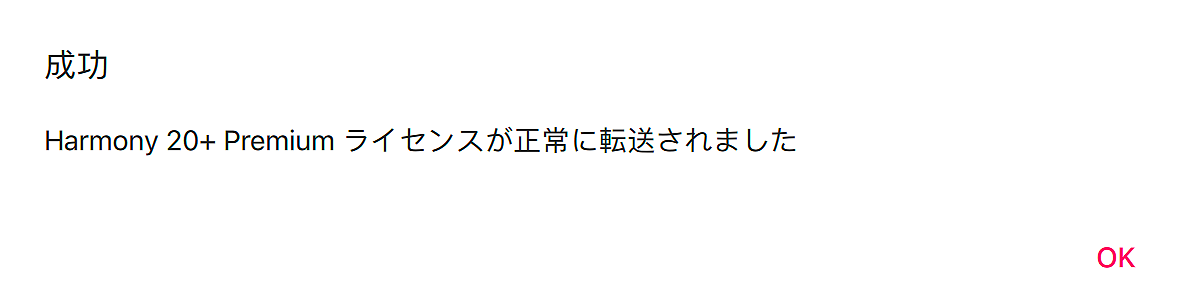 - ライセンスが正常に転送されたことを確認するダイアログが表示されます。